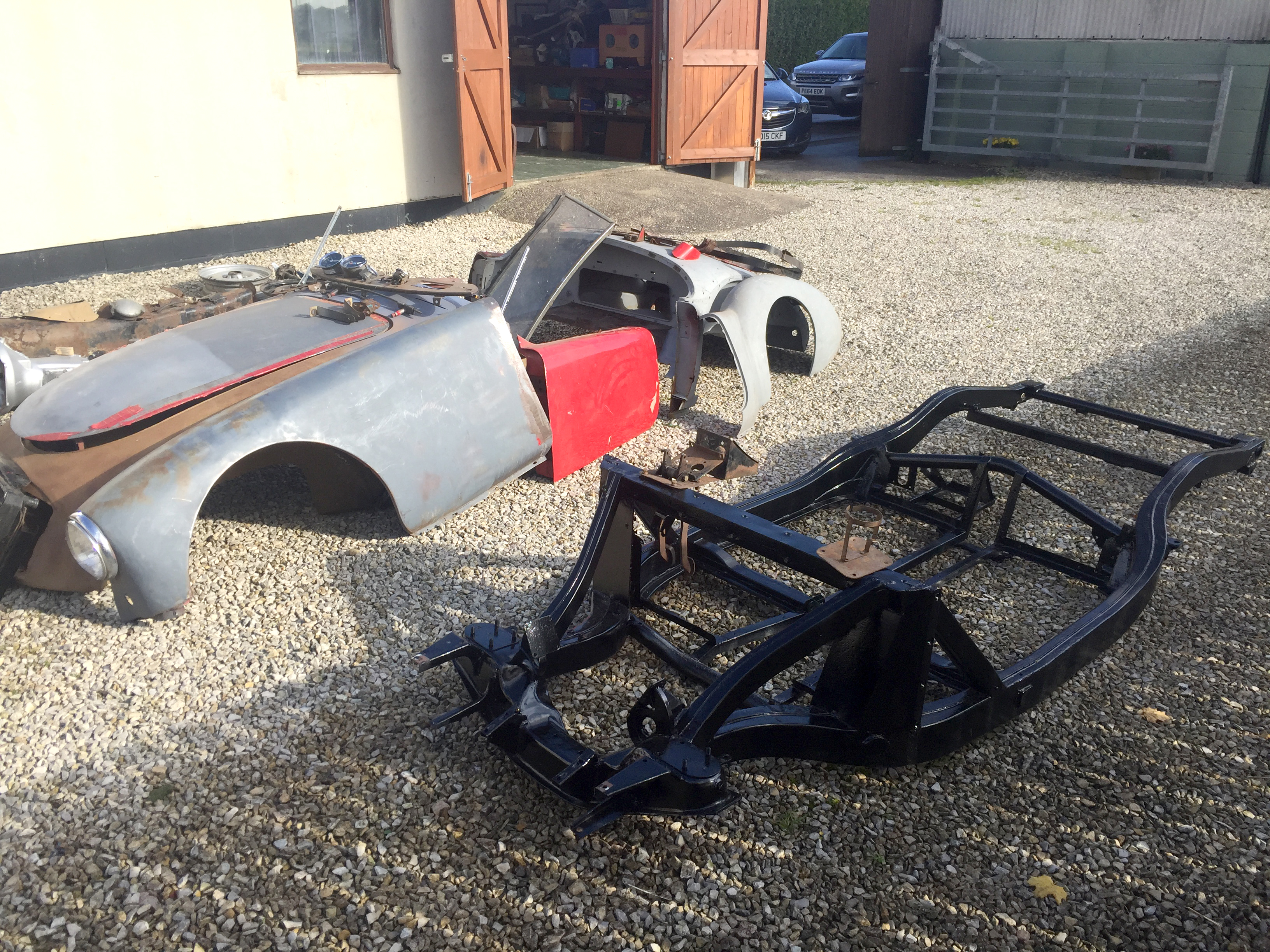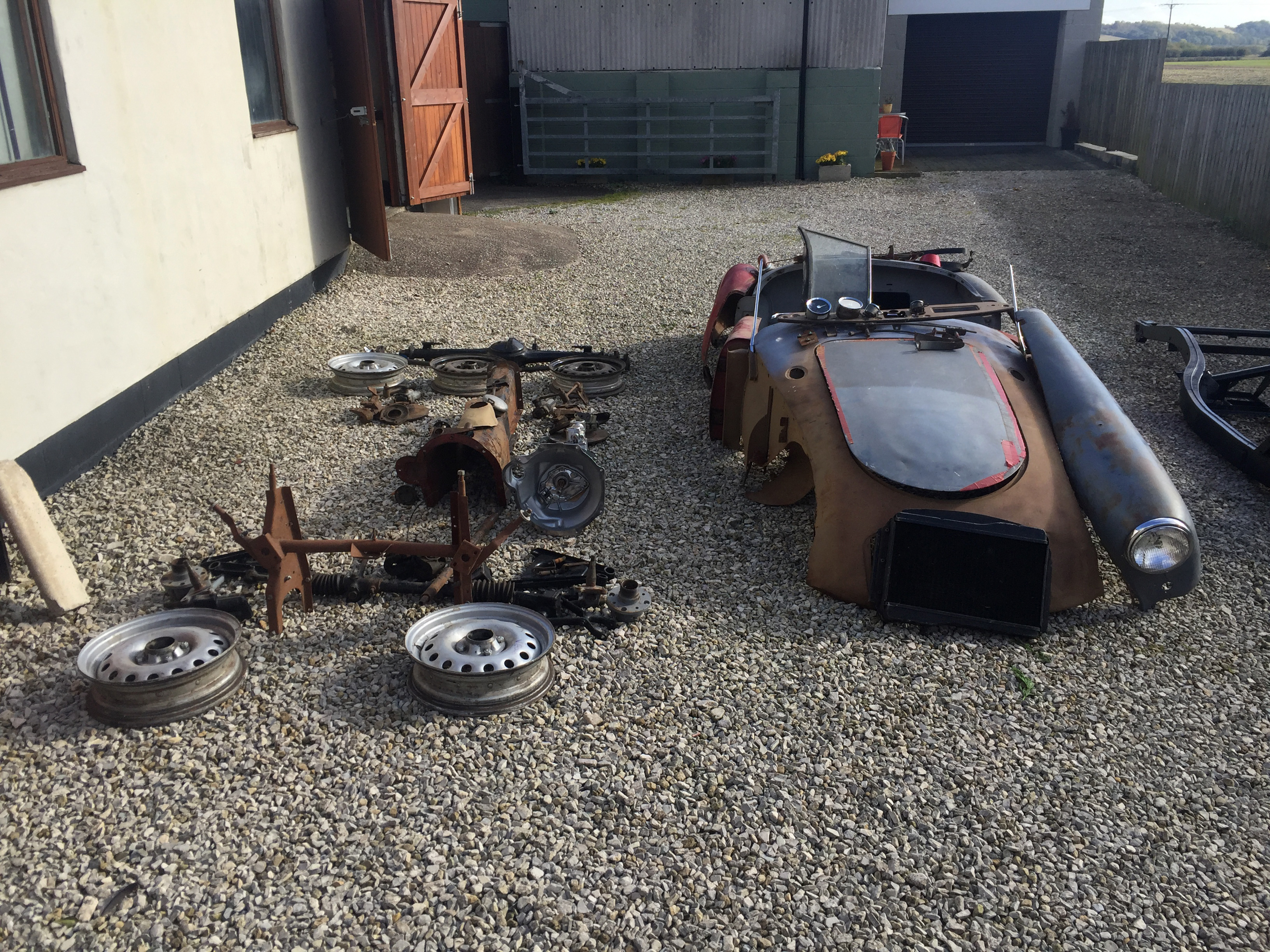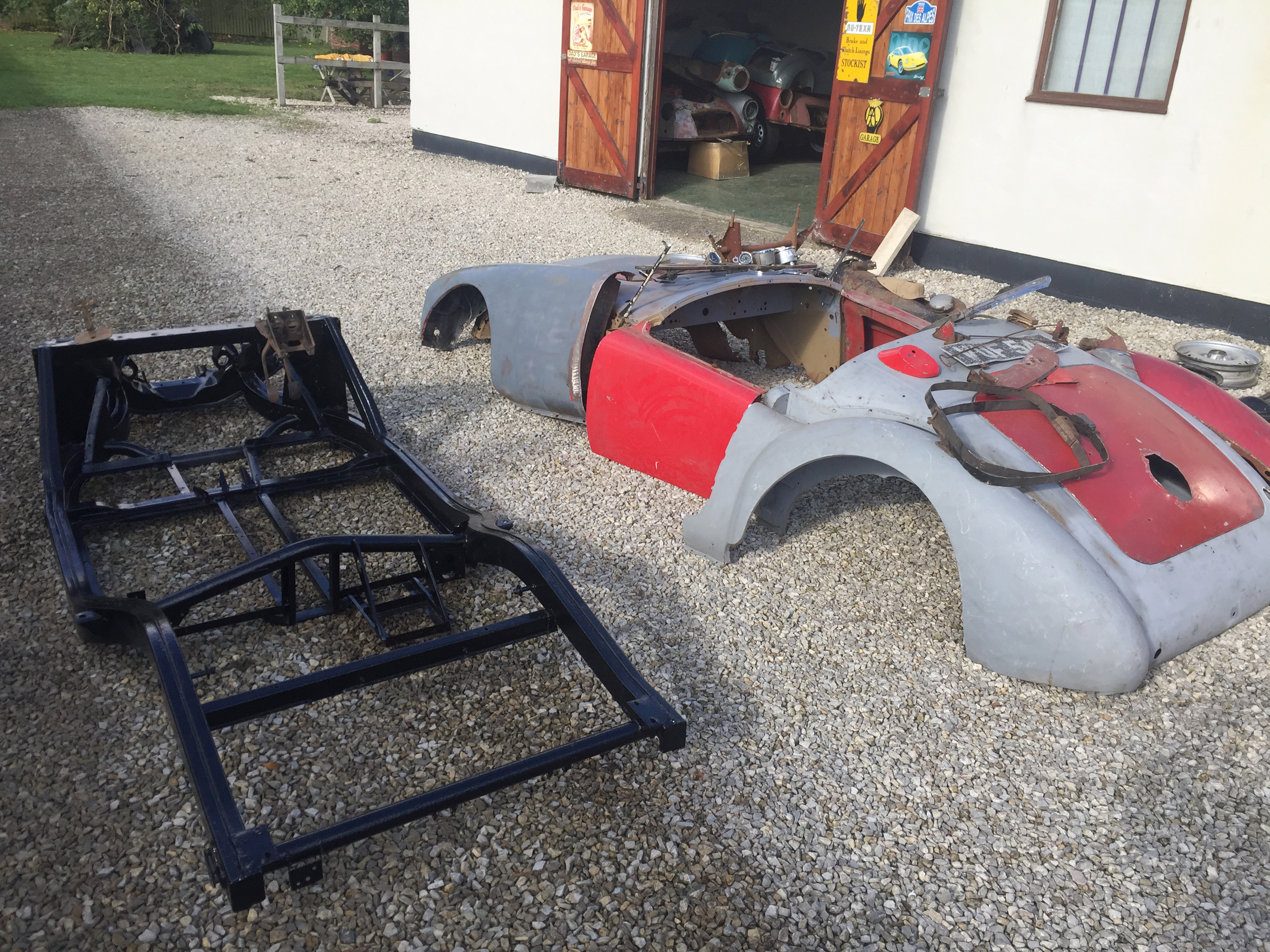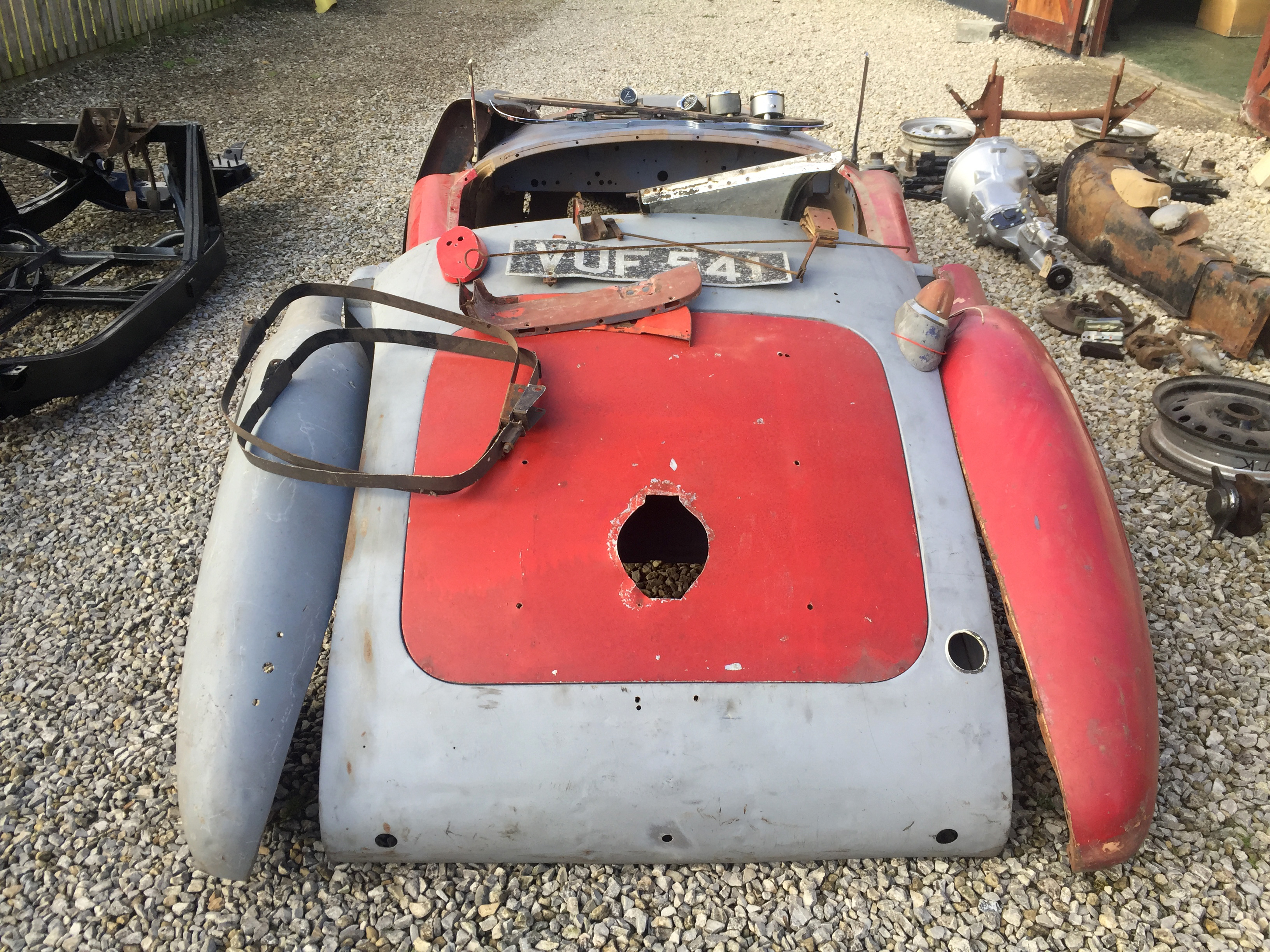 We are very pleased to have recently acquired the sister Fitwilliam team car to TWN 900. The Fitzwilliam team ran 3 MGA Twincam race cars between 1959 and 1960. The first of the three cars to be purchased for the team was VUF 541 which was purchased by the team captain Richard W Fitzwilliam in 1958. The Fitzwilliam team was made up of 3 members; R.Fitzwilliam (VUF 541), P.Fletcher (WGN 734) and C.Martyn (TWN 900). VUF 541, fondly referred to as ‘Vuff’, had been missing since 1962 until it was discovered in an old shed by Bob West a few years ago. Vuff was raced extensively, competing at the Nürburgring in the 1000km, and at Goodwood in the Witsun Trophy. Our plan is to restore the car to it's original racing specifications and to once again have Vuff out competing in races alongside it's team sister TWN 900.